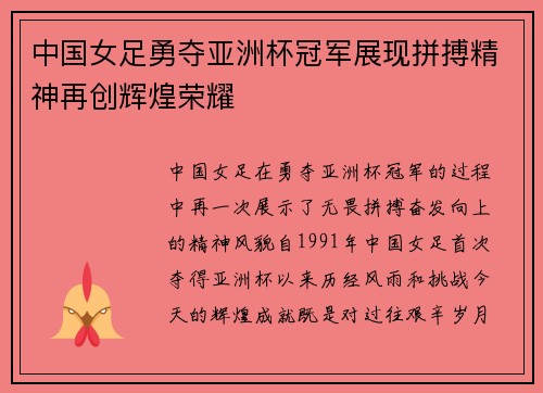 中国女足在勇夺亚洲杯冠军的过程中,再一次...