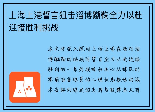 本文将深入探讨上海上港在面对淄博蹴鞠的挑...